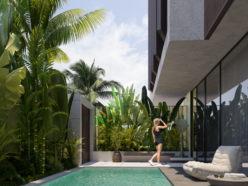 Alex Villas Complex N8 Melasti is more than just a residential complex; it's an architectural expression of privacy, nature, and technological comfort. Built near the popular Melasti Beach, it's inspired by the power of the ocean, the warmth of the tropics, and minimalist form. The project seamlessly integrates into Bali's lush vegetation and rolling landscape, where warm wood creates a sense of comfort and concrete lends expressive geometry and austerity. Green terraces and courtyards become a natural extension of nature within the space. Unique murals on the rooftops serve as a visual code, conveying ideas of flow and Balinese philosophy. This is a space where form serves meaning, and architecture becomes an extension of nature.